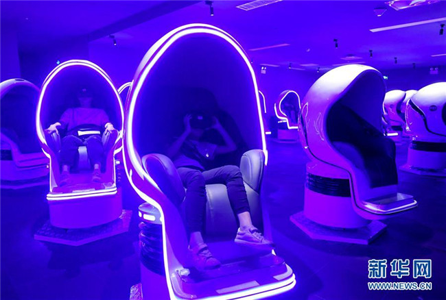 7月24日,家長和孩子在湖南省博物館通過虛擬現(xiàn)實(shí)設(shè)備觀影。