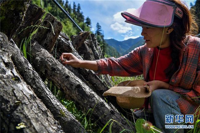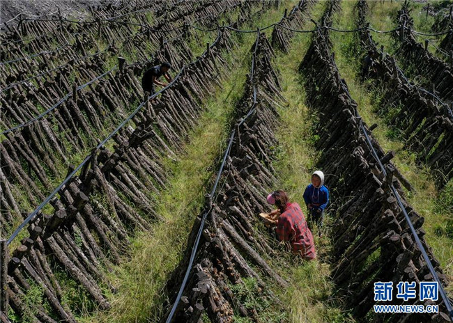 8月10日拍攝的四川壤塘縣下大石溝村種植出的青杠木耳。新華社記者 張超群 攝