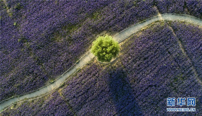 寧夏艾伊薰衣草生態(tài)基地內(nèi)大片馬鞭草競相開放(8月17日無人機(jī)拍攝)。