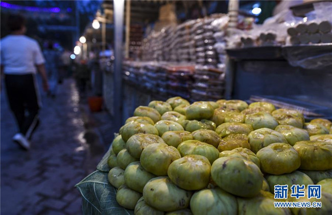 在新疆喀什市歐爾達(dá)路的夜市上,一家攤位前擺放著待出售的無花果(8月12日攝)。新華社記者 王菲 攝