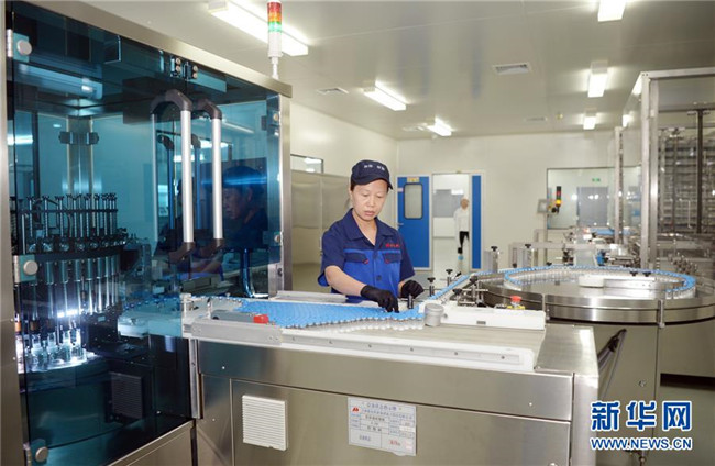 吉林敖東藥業(yè)集團延吉股份有限公司燈檢線操作工朱秀芳在操作全自動凍干粉針偵檢機(8月22日攝)。新華社發(fā)