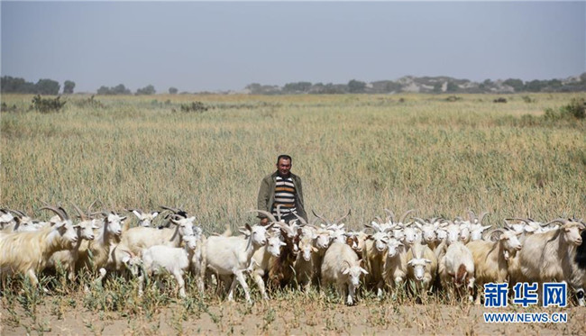 牧羊人買買提吐?tīng)柕?middot;肉孜在塔里木河下游的一片草場(chǎng)放牧(8月24日攝)。 新華社記者 阿曼 攝