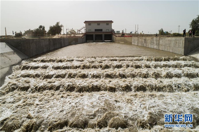 這是2019年實(shí)施的第20次向塔里木河下游生態(tài)輸水,生態(tài)水從大西海子水庫(kù)奔騰而下(8月16日攝)。 新華社發(fā)(肖玉磊 攝)