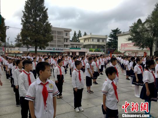 9月2日,金寨縣希望小學(xué)開(kāi)學(xué)的第一天,學(xué)校舉行升旗儀式?!垙?qiáng) 攝