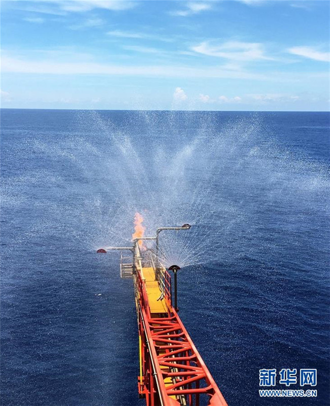 2017年7月9日拍攝的南海天然氣水合物試采工程現(xiàn)場。當日,我國海域天然氣水合物(可燃冰)首次試開采取得圓滿成功。 新華社發(fā)(朱夏 攝)