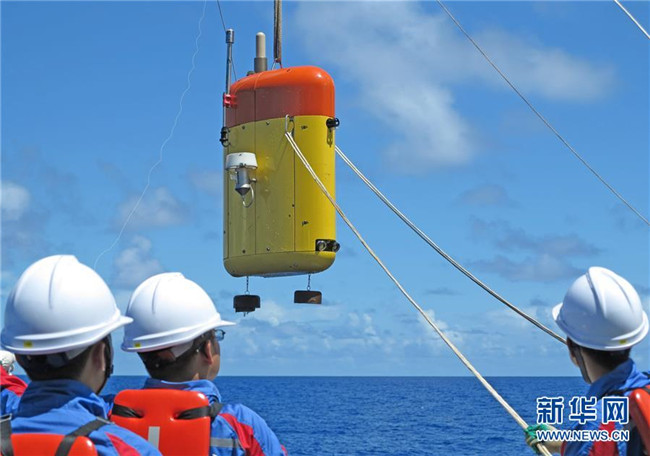 2016年7月1日,在馬里亞納海溝附近海域,“海斗”準備下潛進行科學考察。我國自主研制的“海斗”號無人潛水器在首次綜合性萬米深淵科考中成功進行了一次八千米級、兩次九千米級和兩次萬米級下潛應用,最大潛深達10767米,創(chuàng)造了我國無人潛水器的最大下潛及作業(yè)深度紀錄,使我國成為繼日、美兩國之后第三個擁有研制萬米級無人潛水器能力的國家。 新華社發(fā)