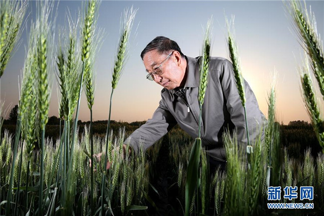 李振聲院士在中國科學(xué)院遺傳與發(fā)育生物學(xué)研究所農(nóng)業(yè)資源研究中心南皮生態(tài)農(nóng)業(yè)試驗站(中科院南皮站)的試驗田里(2014年5月5日攝)。新華社記者 金立旺 攝
