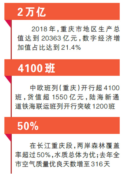 “新中國(guó)成立70年來,重慶人民走過了一段波瀾壯闊的光輝歷程,巴渝大地發(fā)生了翻天覆地的變化。”唐良智說,1997年,重慶成為直轄市后,在黨中央堅(jiān)強(qiáng)領(lǐng)導(dǎo)下,圓滿完成三峽百萬移民搬遷安置任務(wù),為決勝全面建成小康社會(huì)打下了堅(jiān)實(shí)的基礎(chǔ)。2018年,全市地區(qū)生產(chǎn)總值達(dá)到20363億元,是1949年的1466倍;人均地區(qū)生產(chǎn)總值達(dá)到9964美元,是1949年的758倍。