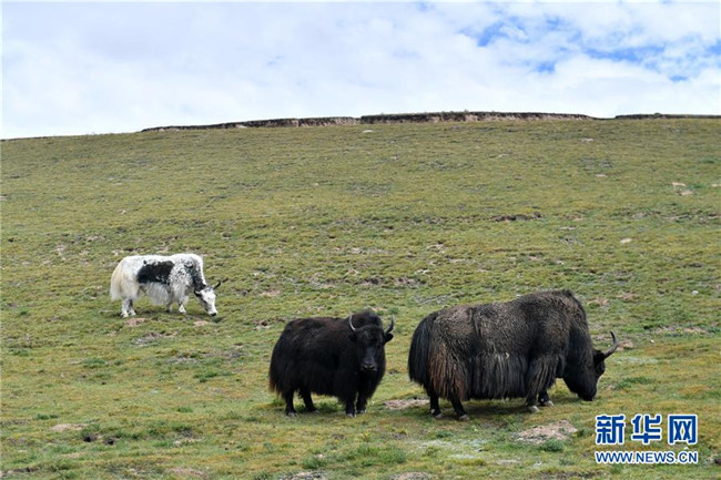 這是在青海省玉樹藏族自治州治多縣治渠鄉(xiāng)同卡村拍攝的牧民合作社草場上的牦牛(9月12日攝)。新華社記者孫瑞博攝