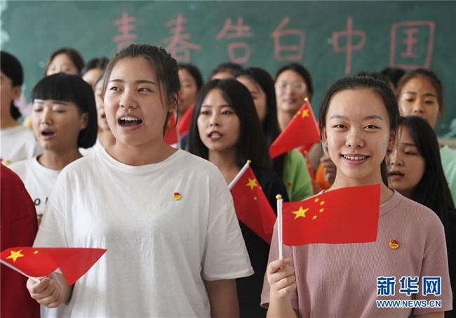 當(dāng)日,河北省邢臺技師學(xué)院開展“青春告白中國”活動,學(xué)生們通過唱歌、快閃、專業(yè)課程等形式,表達對祖國的熱愛和祝福。 新華社記者 邢廣利 攝