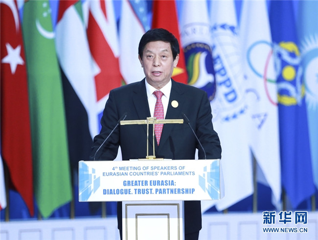 栗戰(zhàn)書(shū)指出,歐亞大陸是世界上面積最大、人口最多、發(fā)展最迅速、前景最廣闊的大陸,歐亞各國(guó)利益與共、安危與共。歐亞各國(guó)需要攜手努力,加強(qiáng)對(duì)話、信任、合作,促進(jìn)和平、穩(wěn)定、繁榮。栗戰(zhàn)書(shū)提出四點(diǎn)建議:一是加強(qiáng)溝通協(xié)商,尊重各國(guó)自主選擇的發(fā)展道路,弘揚(yáng)伙伴精神,求同存異,擴(kuò)大共識(shí),增進(jìn)政治互信;二是拓展經(jīng)貿(mào)合作,促進(jìn)貿(mào)易和投資自由化便利化,推動(dòng)世界經(jīng)濟(jì)開(kāi)放、包容、普惠、平衡、共贏發(fā)展;三是密切人文交流,推動(dòng)文化、教育、旅游、體育、媒體、青年等領(lǐng)域合作,促進(jìn)民心相通;四是深化立法機(jī)構(gòu)交往,落實(shí)好國(guó)家領(lǐng)導(dǎo)人達(dá)成的重要共識(shí),助力國(guó)家關(guān)系發(fā)展,為深化歐亞合作增添亮點(diǎn)、提供保障。