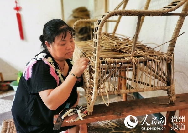 村民正在編織藤編產(chǎn)品。王欽 攝