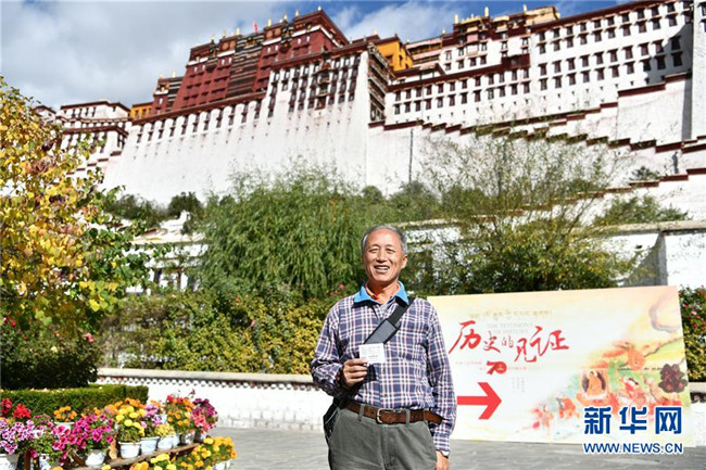 10月15日,來自廣東的游客王衛(wèi)東展示他用身份證換取的布達(dá)拉宮散客免費(fèi)預(yù)約券。