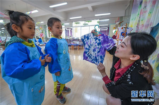今年以來,浙江省長興縣夾浦鎮(zhèn)中心幼兒園依托當(dāng)?shù)貍鹘y(tǒng)布藝文化基礎(chǔ)開設(shè)“七彩課堂”,引進(jìn)布藝、扎染等傳統(tǒng)工藝課程,讓孩子們感受民間工藝的魅力。 新華社記者 徐昱 攝