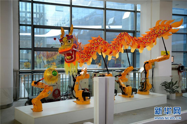 這是10月21日在蕪湖機(jī)器人產(chǎn)業(yè)園拍攝的舞龍機(jī)器人。 新華社發(fā)(黃博涵攝)