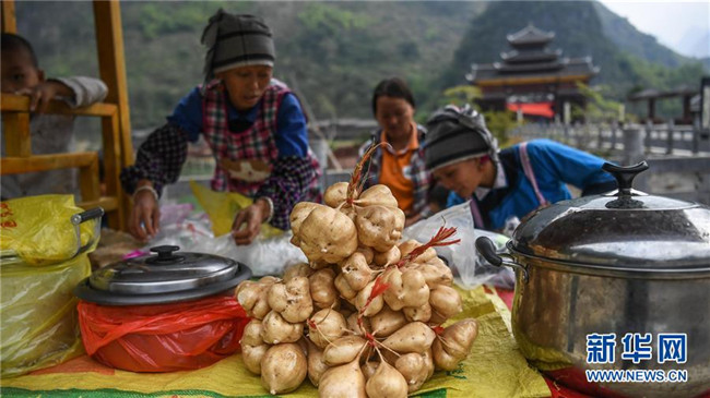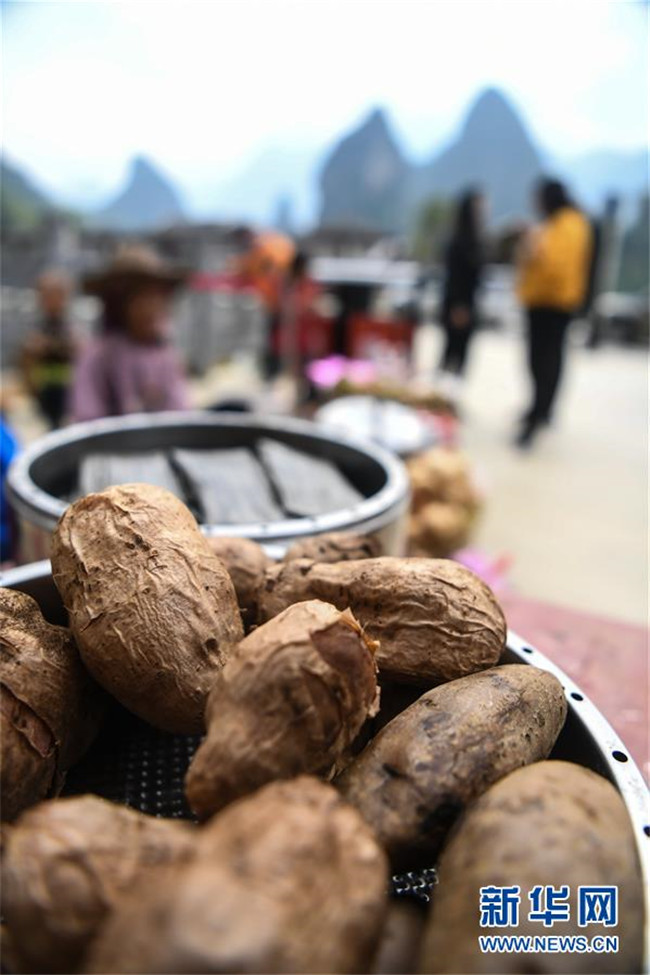 這是廣西凌云縣浩坤村群眾接待游客的特產(11月24日攝)。新華社記者張愛林