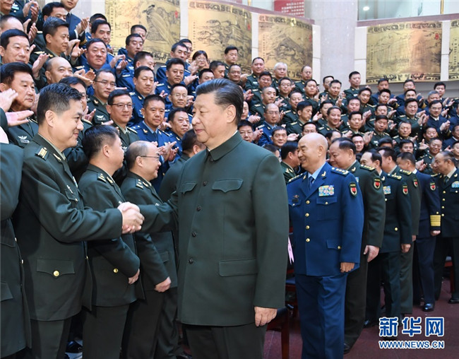 11月27日上午,全軍院校長(zhǎng)集訓(xùn)在國(guó)防大學(xué)開(kāi)班。中共中央總書(shū)記、國(guó)家主席、中央軍委主席習(xí)近平出席開(kāi)班式并發(fā)表重要講話(huà),代表黨中央和中央軍委,向全軍院校長(zhǎng)和軍事教育戰(zhàn)線(xiàn)的同志們致以誠(chéng)摯問(wèn)候。這是習(xí)近平親切接見(jiàn)集訓(xùn)班全體學(xué)員。 新華社記者 李剛 攝