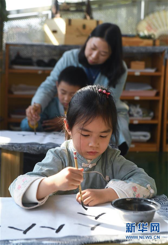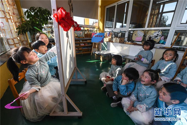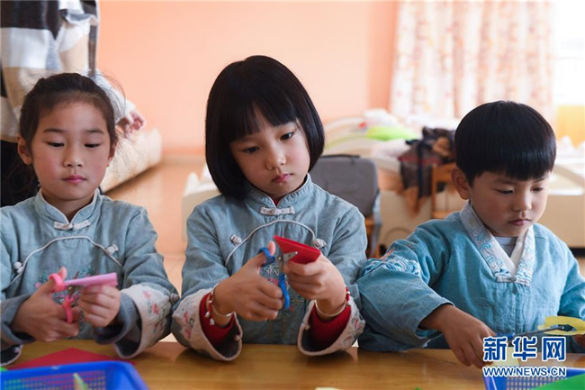從2019年初開始,浙江省湖州市南太湖幼兒園開啟“國學(xué)課堂”,通過設(shè)立傳統(tǒng)禮儀、書法、剪紙、京劇、皮影戲等國學(xué)傳統(tǒng)文化課程,致力于將國學(xué)經(jīng)典教育滲透到幼兒日常生活學(xué)習(xí)中,培養(yǎng)幼兒的古典文化底蘊,教育幼兒從小培養(yǎng)良好的禮儀行為,讓幼兒們在傳統(tǒng)國學(xué)文化的滋養(yǎng)中成長。 新華社記者 徐昱 攝