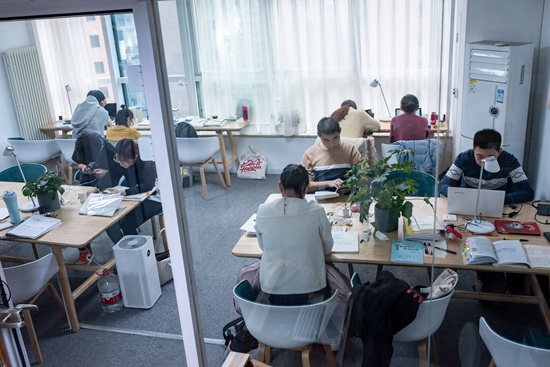 關于付費自習室的前景,店主們的看法不一。舒悅認為,雖然自習室在國內作為新興事物前景可觀,但絕不是一個掙快錢的行業(yè)。他表示,在北京仍有很多人不知道付費自習室的存在,同行們都在做著同一件事:“讓市場、大眾認識我們。”紹強的看法相反,他認為付費自習室對顧客的經濟水平有一定要求,并且“收入的天花板很低”,因為空間和服務內容有限,服務范圍也很難擴展。對于未來,何秀娟認為經營付費自習室的同行都處于一個初始嘗試的階段,“大家都在摸索”。(宋欣然 攝/文)