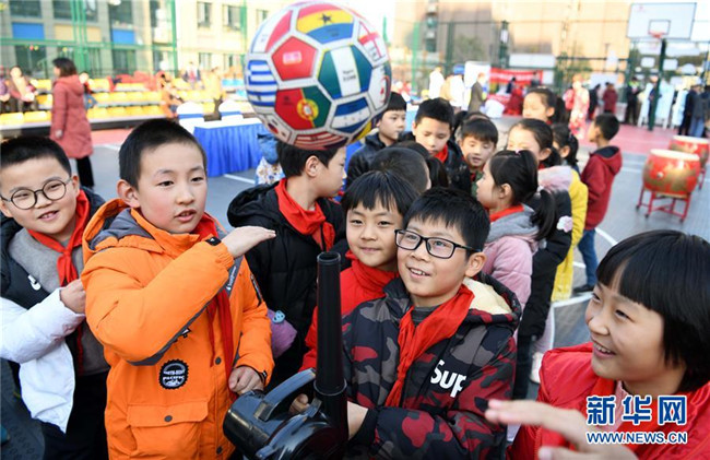 12月4日,科企社區(qū)小朋友在體驗“動畫原理”科普設備。新華社記者 劉軍喜 攝