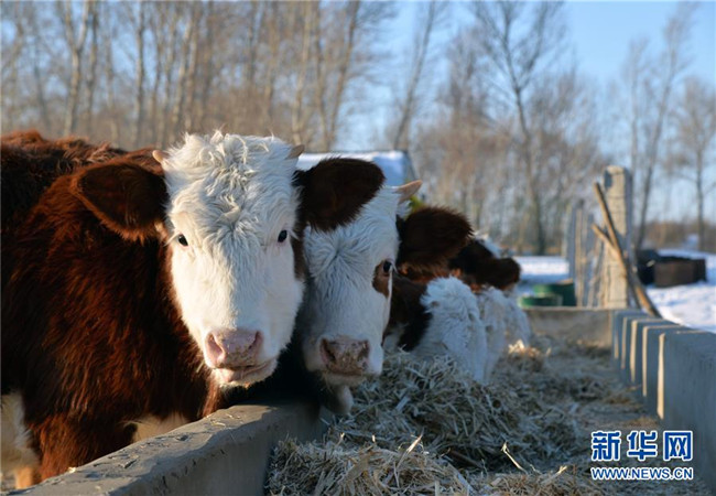 這是12月19日拍攝的科左后旗巴嘎塔拉蘇木伊和布拉格嘎查村民仁欽昵瑪家的黃牛。 新華社記者徐欽攝