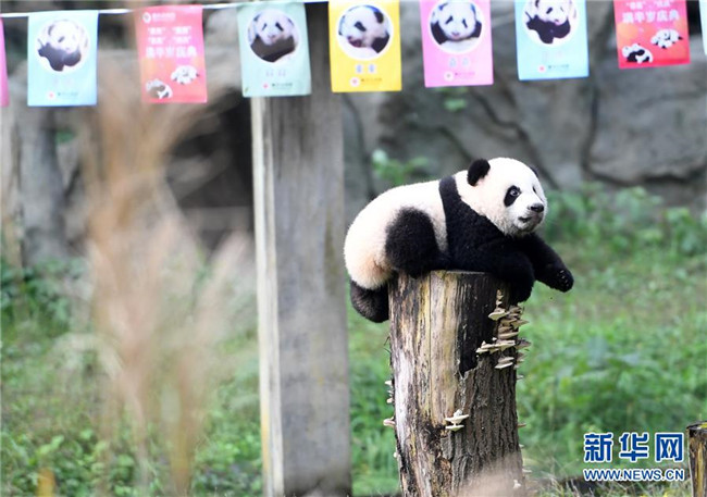 12月22日,重慶動(dòng)物園1只半歲的大熊貓?jiān)趹敉饣顒?dòng)。當(dāng)日,重慶動(dòng)物園為4只大熊貓寶寶“雙雙”“重重”“喜喜”“慶慶”舉行半歲生日慶?;顒?dòng)。4只半歲大熊貓?jiān)陲曫B(yǎng)員的照料下,在熊貓館運(yùn)動(dòng)場(chǎng)內(nèi)玩耍、嬉戲,與市民游客一同過冬至。新華社記者唐奕攝