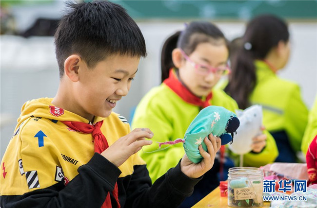 當(dāng)日,內(nèi)蒙古呼和浩特市玉泉區(qū)通順街小學(xué)“巧手社團(tuán)”的學(xué)生在老師的指導(dǎo)下,利用身邊的布頭、絲綿等廢棄物,制作生肖鼠布藝作品,表達(dá)對(duì)新年的美好祝愿。近年來,玉泉區(qū)教育部門大力推動(dòng)“傳統(tǒng)文化進(jìn)校園”活動(dòng),在當(dāng)?shù)貙W(xué)校里開設(shè)剪紙、面塑、戲曲等民間藝術(shù)課程,讓學(xué)生感受傳統(tǒng)文化的魅力。 新華網(wǎng) 發(fā)(丁根厚 攝)