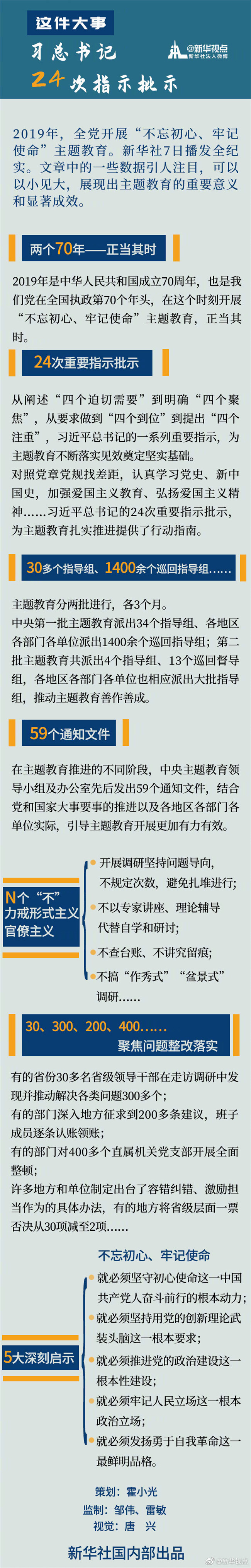 對照黨章黨規(guī)找差距,認(rèn)真學(xué)習(xí)黨史、新中國史,加強(qiáng)愛國主義教育、弘揚(yáng)愛國主義精神……習(xí)近平總書記的24次重要指示批示,為主題教育扎實(shí)推進(jìn)提供了行動指南。