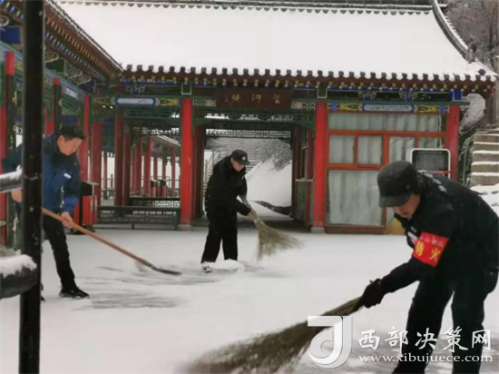此次降雪持續(xù)時間長,降雪量大,清掃過程以主要道路為重點,快速對路面積雪進行清掃,確保天亮后游客能夠安全游覽景區(qū)。