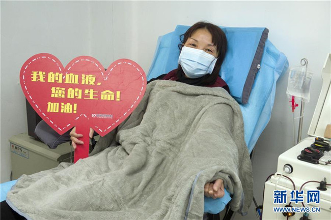 在武漢血液中心的中國醫(yī)學科學院CPnCoV項目組,康復病人、來自漢口醫(yī)院的護士蔡桃英在獻血漿時拍照留念。她說同事們都在一線忙碌,她獻血漿后,再休息幾天就準備回到崗位上班,她說自己感染是由于早期防護不足經驗不夠造成的,再次回到工作崗位一定沒有問題(2月17日攝)。 新華社記者 才揚 攝