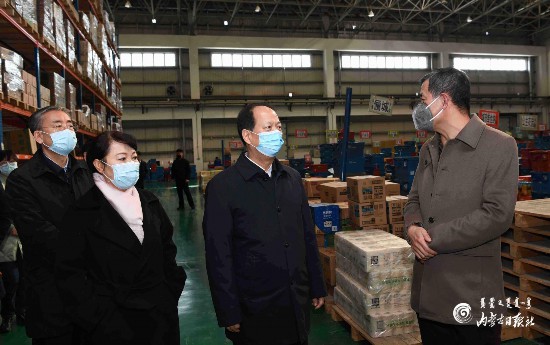 3月12日,自治區(qū)黨委書記、人大常委會主任石泰峰來到呼和浩特市沙良物流園區(qū),了解倉儲物流運輸情況。內(nèi)蒙古日報社融媒體記者 袁永紅 攝