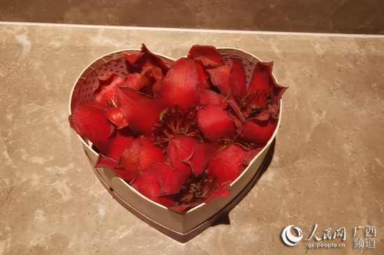 到了酒店,我收到了一份特殊的禮物,是兒子親手為我裝飾的木棉花花籃。晚上看電視報道時,我才知道,原來家人為了見我一面,提前一個小時就到酒店外等候了。在等待的時候,兒子就去撿了很多木棉花花瓣,擺成“心”的形狀。