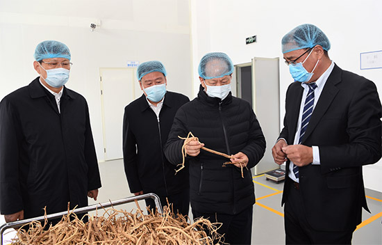 實(shí)現(xiàn)穩(wěn)定脫貧,發(fā)展產(chǎn)業(yè)是根本之策。石泰峰深入佰惠生新農(nóng)業(yè)、恒光大藥業(yè)、德青源農(nóng)業(yè)、宏發(fā)牧業(yè)、安琪酵母、恒都農(nóng)業(yè)等企業(yè)和部分專(zhuān)業(yè)合作社,考察特色產(chǎn)業(yè)發(fā)展、農(nóng)企利益聯(lián)結(jié)及帶貧促貧成效。當(dāng)?shù)匾劳旋堫^企業(yè)和專(zhuān)業(yè)合作社帶動(dòng),因地制宜發(fā)展種養(yǎng)加工業(yè),探索走出了“甜菜富民”“中藥富民”“金雞富民”等帶貧減貧特色路。七合堂村通過(guò)懂技術(shù)、善經(jīng)營(yíng)的帶頭人引領(lǐng)發(fā)展野果產(chǎn)業(yè),促進(jìn)了群眾脫貧。石泰峰說(shuō),企業(yè)發(fā)展好了,扶貧效益才會(huì)更好,同時(shí)也能為鄉(xiāng)村振興提供有力支撐。種養(yǎng)殖業(yè)發(fā)展起來(lái)了,還可以“接二連三”,搞加工、搞旅游。他勉勵(lì)企業(yè)要提升規(guī)?;?jīng)營(yíng)水平,不斷延伸產(chǎn)業(yè)鏈條,提高產(chǎn)品附加值,打造品牌,拓展市場(chǎng),構(gòu)建穩(wěn)固利益聯(lián)結(jié)機(jī)制,讓發(fā)展成果更好惠及廣大群眾。