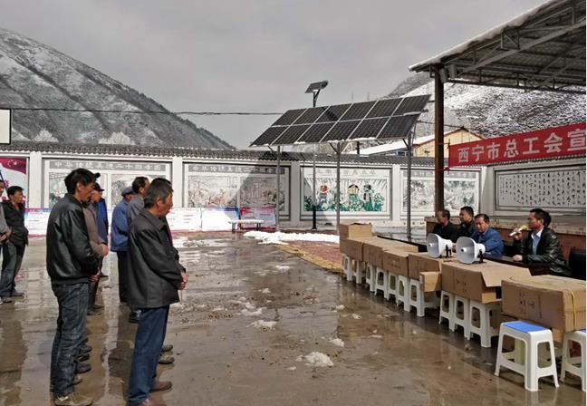 西寧市總工會(huì)為大通縣寶庫(kù)鄉(xiāng)五間房村捐贈(zèng)無(wú)線廣播