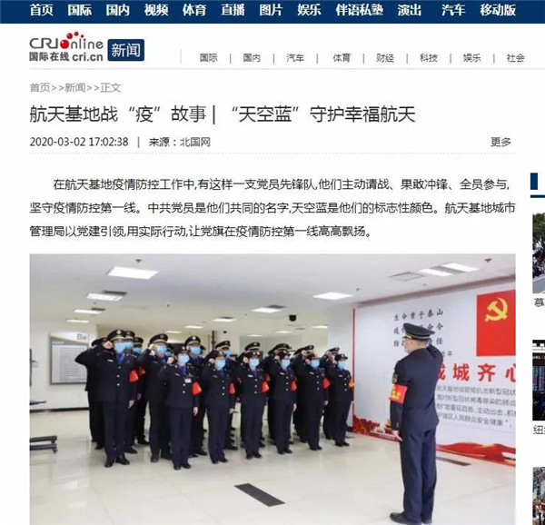 3月2日,航天基地《“天空藍(lán)”守護(hù)幸福航天》,講述了擁有18年黨齡的張強、退役士官魏斌、工作人緣好李鵬飛用行動展現(xiàn)共產(chǎn)黨人政治本色的積極實踐。國際在線、中國日報網(wǎng)、環(huán)球網(wǎng)、鳳凰網(wǎng)、西部網(wǎng)、三秦網(wǎng)、搜狐等近20家中央、省級、市級網(wǎng)絡(luò)媒體轉(zhuǎn)發(fā),網(wǎng)友產(chǎn)生強烈共鳴。