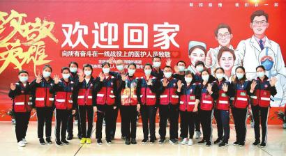 醫(yī)護人員合影留念,開始回家和家人團聚。