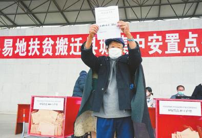 走上抽簽臺、抽取房號、按下手印……簡單幾個(gè)步驟后,昭覺縣77歲的特殊困難戶色七古博,拿到了易地扶貧搬遷縣城集中安置點(diǎn)的新房房號。