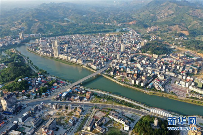 這是廣西環(huán)江毛南族自治縣縣城風貌(5月14日攝,無人機照片)。