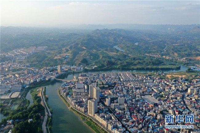 這是廣西環(huán)江毛南族自治縣城西移民安置區(qū)(5月14日攝,無人機照片)。