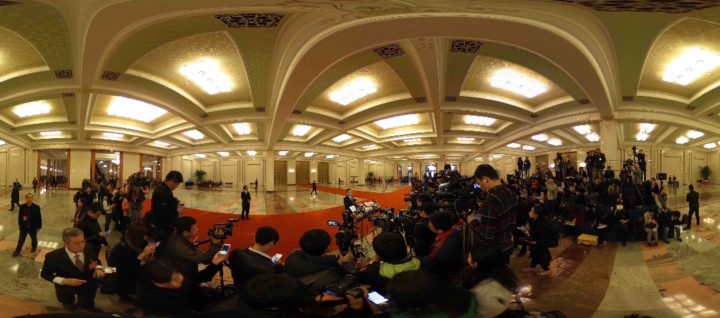 2016年3月16日,第十二屆全國人民代表大會(huì)第四次會(huì)議在北京人民大會(huì)堂舉行閉幕會(huì)。在“部長通道”首次有20多位部長主動(dòng)發(fā)聲。這是記者在人民大會(huì)堂“部長通道”采訪。