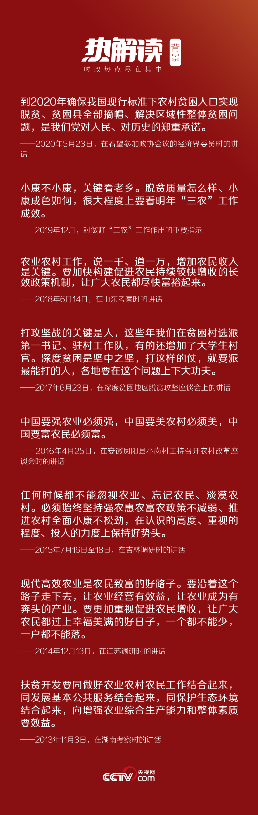 3月6日,在黨的十八大以來脫貧攻堅方面最大規(guī)模的會議上,習近平對脫貧攻堅工作再作部署:“這是一場硬仗,越到最后越要緊繃這根弦,不能停頓、不能大意、不能放松。各省區(qū)市都層層簽了軍令狀,承諾了就要兌現(xiàn)。”