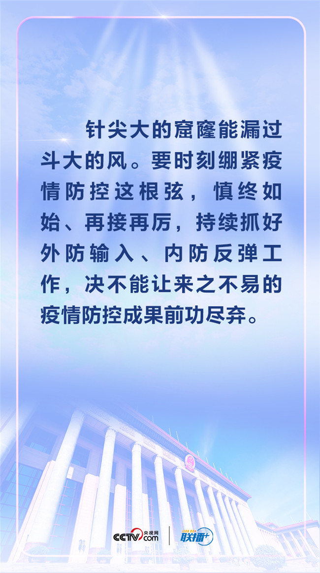 當(dāng)前,境外疫情擴(kuò)散蔓延勢頭仍然沒有得到有效遏制,國內(nèi)個別地區(qū)聚集性疫情仍然存在,湖北有時(shí)還出現(xiàn)散發(fā)零星確診病例,無癥狀感染者每天還有新增。習(xí)近平用一句“大白話”講明了加強(qiáng)疫情防控的重要性。