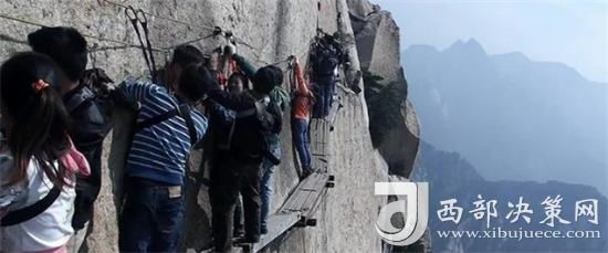 眾所周知 “自古華山一條路”是一道奇觀。這條道路或越澗跨溪,或臨崖盤(pán)山,或入崖間深谷,或走峭壁嶺脊,或平坦或曲陡,或?qū)挸ɑ颡M窄,曲折變化,跌宕起伏,把人帶入意境深邃的萬(wàn)般景象之中。道路兩旁遍布的摩崖石刻,使人仿佛走進(jìn)一個(gè)書(shū)法藝術(shù)的走廊。一步一景一傳說(shuō),更使華山沿途披上了濃厚的文化色彩。