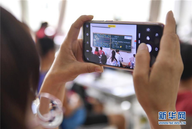 7月6日,吉林省孤兒學(xué)校高三年級(jí)班主任吳東輝用手機(jī)拍攝學(xué)生們寫給她的“請(qǐng)假條”。 新華社記者 許暢 攝