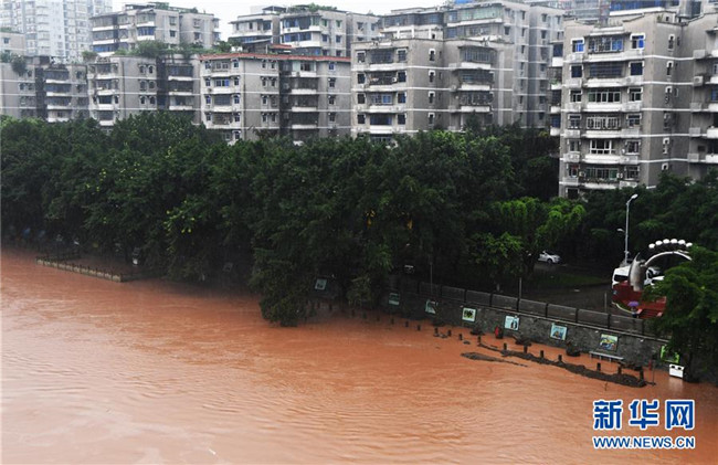 7月7日,洪水穿過綦江城區(qū)。新華社記者 王全超 攝