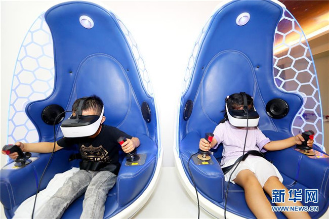 7月12日,小學生在山東省青島市即墨區(qū)環(huán)秀街道濱湖社區(qū)科普館進行VR體驗活動。新華社發(fā)(梁孝鵬 攝)