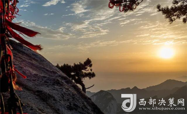 華山觀日處位于華山東峰(亦稱朝陽峰),朝陽臺為最佳地點(diǎn)。東峰又名朝陽峰。海拔2096米,峰頭斜削,絕壁千丈,山勢壯麗,古松參天。上有朝陽臺為東峰絕頂,登臨而上,可以觀云海日出。每當(dāng)晴天破曉之際,一輪紅日冉冉升起,照耀著華山和周圍許多如削如切的山峰,景色瑰麗。