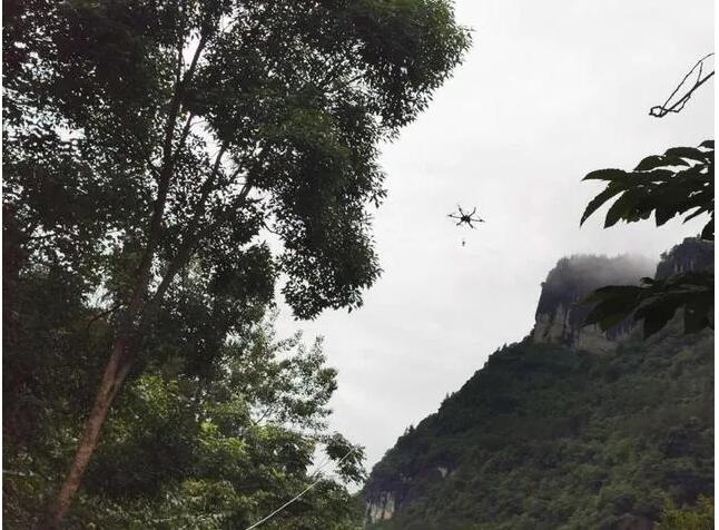 由于光纜恢復(fù)區(qū)域地勢險(xiǎn)峻,搶修難度大,搶修人員結(jié)合現(xiàn)場實(shí)際情況后決定采用無人機(jī)牽引技術(shù)布放光纜,這樣省時(shí)、省力又安全!
