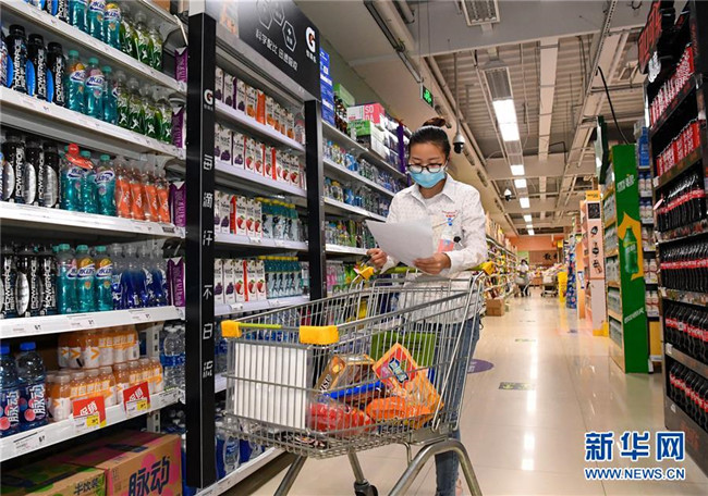 7月18日,在烏魯木齊市新市區(qū)一大型超市內(nèi),工作人員按照訂單挑選商品,商品將由配送人員送達(dá)顧客。 新華社記者 宋彥樺 攝