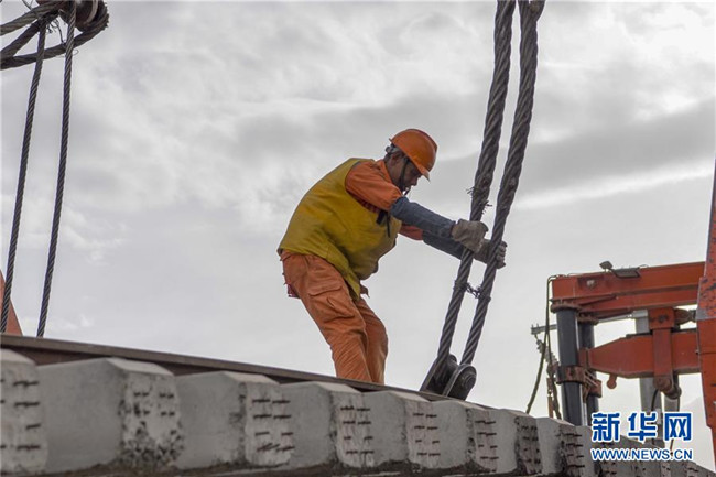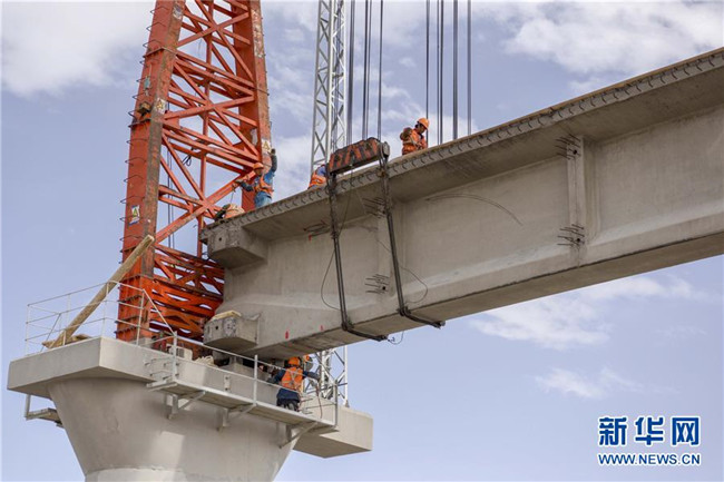 19日上午,位于新疆若羌縣依吞布拉克鎮(zhèn)的G315國道一號大橋上,隨著一根重達(dá)16噸的T梁穩(wěn)穩(wěn)落在橋墩上,新疆在建重大工程格(爾木)庫(爾勒)鐵路新疆段最后一座跨315國道的橋梁架設(shè)完工。
